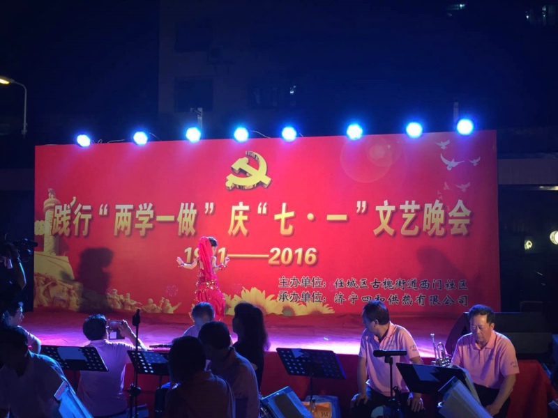 為紀念中國共產(chǎn)黨成立95周年,進一步激發(fā)基層黨組織活力,促進和諧社企建設,展示社區(qū)濃厚的文化氛圍和企業(yè)關愛民生的責任擔當,由任城區(qū)古槐街道西門社區(qū)主辦,濟寧四和供熱有限公司承辦的“踐行‘兩學一做’慶‘七·一’”主題文藝晚會在光明健身廣場隆重舉行,四和供熱公司演職人員同廣大黨員群眾一起載歌載舞共迎黨的生日。