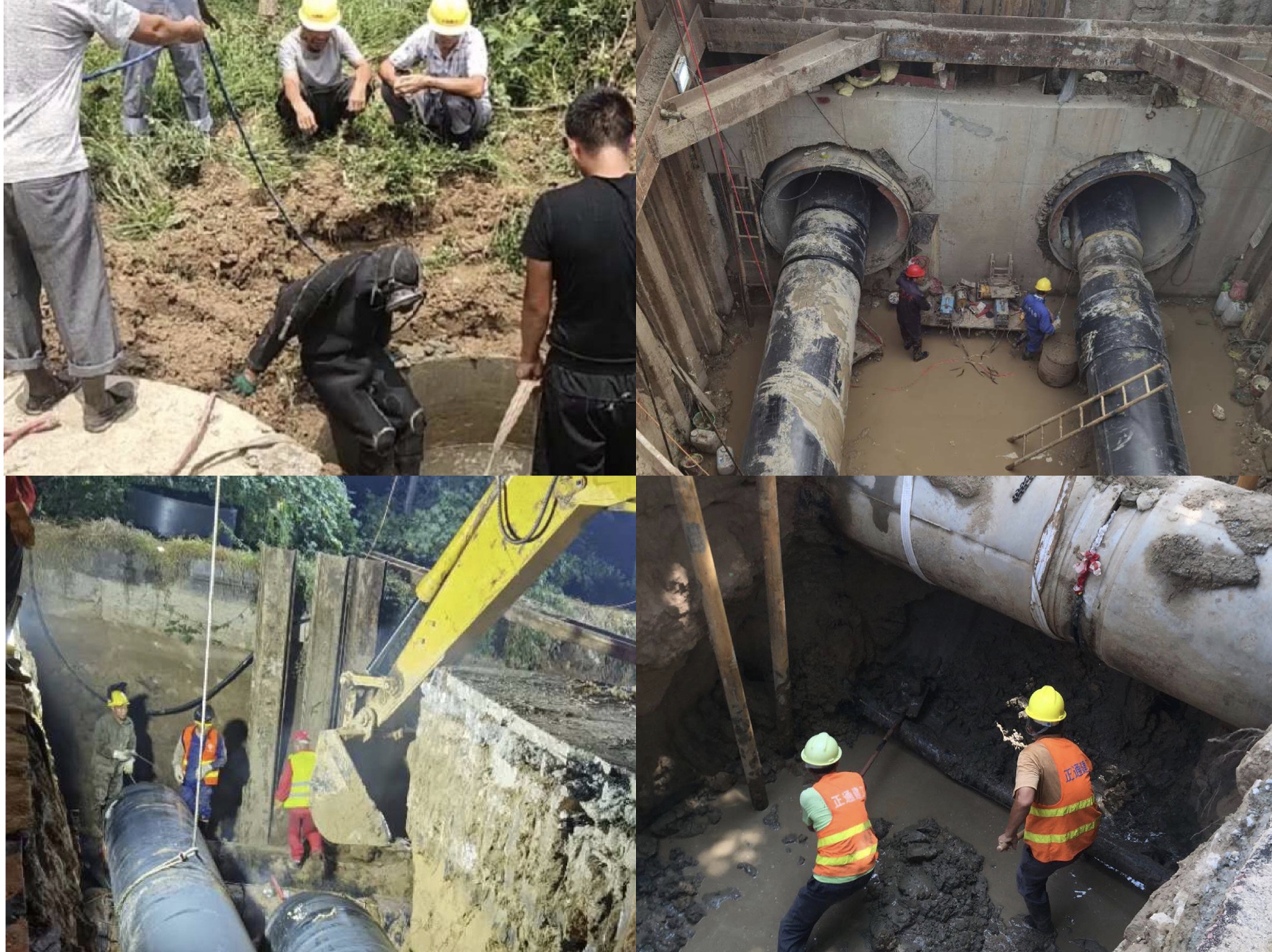 西部熱源替換工程嘉祥電廠線供熱管網(wǎng)總長15.3公里,工程作業(yè)面環(huán)境復(fù)雜。涉及清障7.5公里,穿越老運河1處、頂管作業(yè)2處、涵洞4條、并行污水管1公里。面對工期緊、任務(wù)重、施工難度大等困難,參與建設(shè)的建工集團(tuán)和熱電集團(tuán)項目負(fù)責(zé)人團(tuán)結(jié)一心,齊抓共管,攻堅克難,全力以赴推進(jìn)“清障協(xié)調(diào)、施工技術(shù)、材料保障”等工作。項目施工中,西一標(biāo)段匯祥路東段、西二標(biāo)段等雨水、污水管道,與施工管道并行,且老化嚴(yán)重,經(jīng)常出現(xiàn)雨水、污水管網(wǎng)泄露后倒灌溝槽的情況。項目部在地下管網(wǎng)資料不齊全的情況下,采用“蛙人”潛入污水中,探查漏點進(jìn)行封堵漏。由于工作坑面積大,漏水點位小,“蛙人”們在污水中一處一處用手感應(yīng)摸排,每次需要潛入污水中數(shù)小時才能完成,對施工工作造成極大困難。安居街道3.7公里施工路段緊鄰老運河,地下水位淺,基坑強排水降水效果不明顯,項目部集思廣益,通過打降水井、地面焊接吊入溝槽減少低水位作業(yè)空間等方式,保障項目如期進(jìn)行。