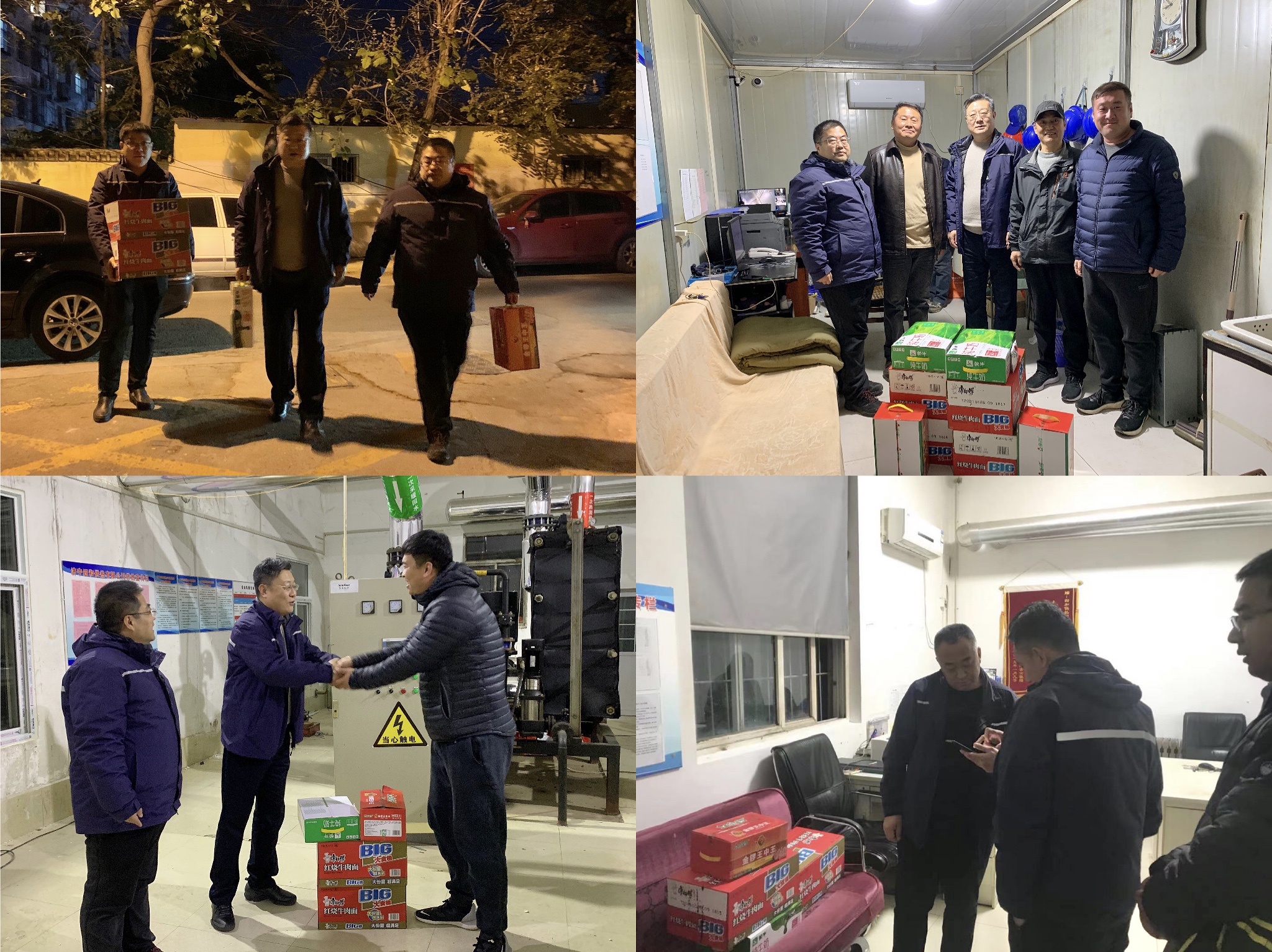 供熱管理所內(nèi),帶隊(duì)領(lǐng)導(dǎo)贊揚(yáng)了各所人員風(fēng)里來(lái)雨里去,不辭辛苦的甘于奉獻(xiàn)精神,對(duì)大家做出的努力給予了充分肯定,向辛苦付出的值守人員表示誠(chéng)摯的感謝,并為夜晚仍堅(jiān)守在一線的干部職工送上方便面、火腿腸、牛奶等暖心的慰問(wèn)品。詢問(wèn)了近期工單完成過(guò)程中遇到的困難、當(dāng)前群眾反映集中的高頻、共性派單,要求各所工作人員“事不過(guò)夜”、“日清日結(jié)”,同時(shí)叮囑大家要堅(jiān)持不懈地為百姓做好供熱服務(wù)工作,始終將群眾的訴求放在各項(xiàng)工作的首位,想群眾之所想,急群眾之所急,解群眾之所難,注意日常保暖保重身體,嚴(yán)抓疫情防控做好個(gè)人疫情防護(hù)措施,保證安全穩(wěn)定運(yùn)行。