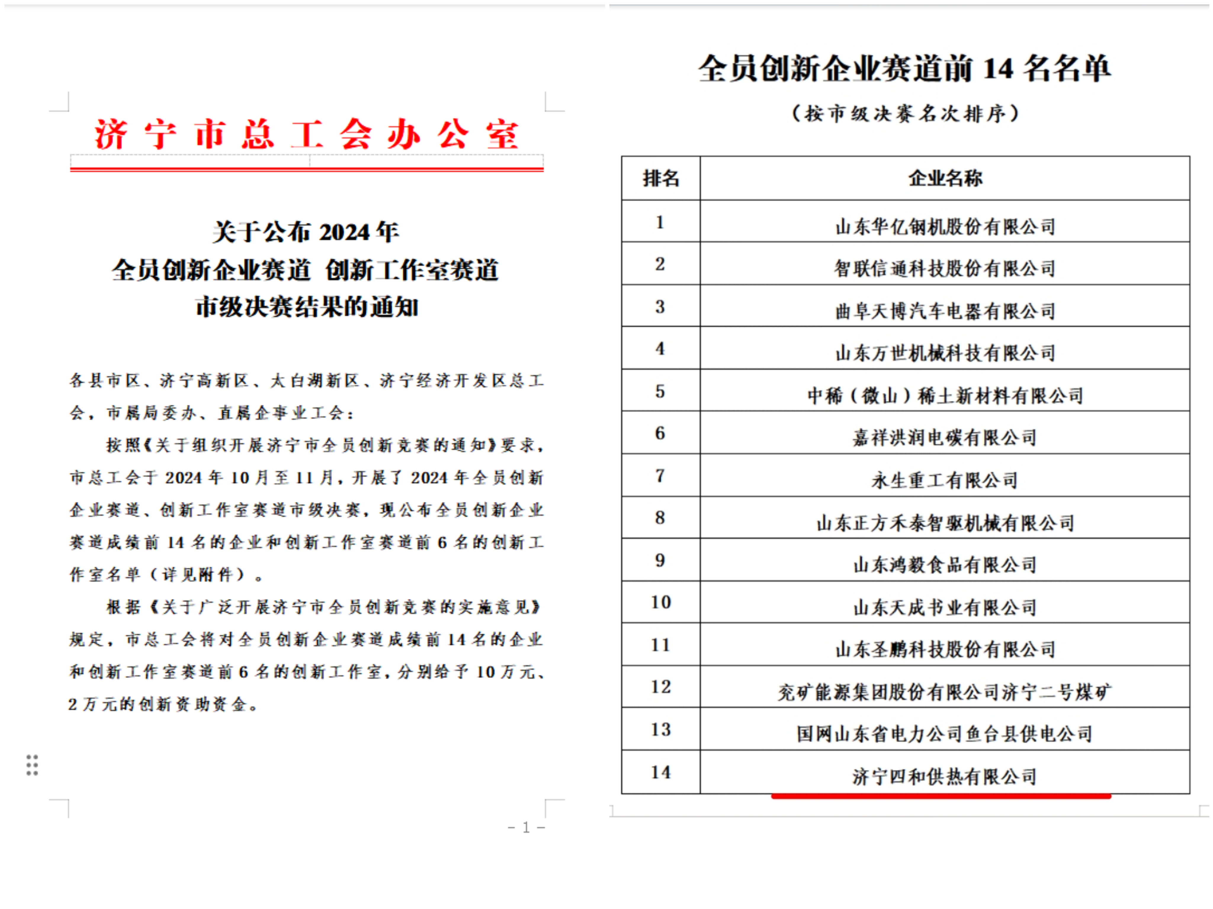 濟(jì)寧四和供熱有限公司榮獲2024年全員創(chuàng)新企業(yè)
